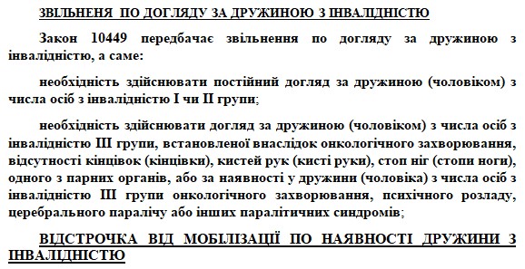 як отримати відстрочку від мобілізації якщо дружина інвалід І групи по Закону 10449, відстрочка від мобілізації якщо жінка інвалід 1 групи по Закону 10449, інвалідність 1 групи у дружини як підстава на відстрочку по Закону 10449, відстрочка якщо у дружини інвалідність 2 групи по Закону 10449, звільнення із ЗСУ коли жінка інвалід 2 групи по Закону 10449, підстави на звільнення військового дружина інвалід 1 групи по Закону 10449, право на відстрочку коли дружина інвалід другої групи по Закону 10449, дружина інвалід 2 групи відстрочка за Законом 10449